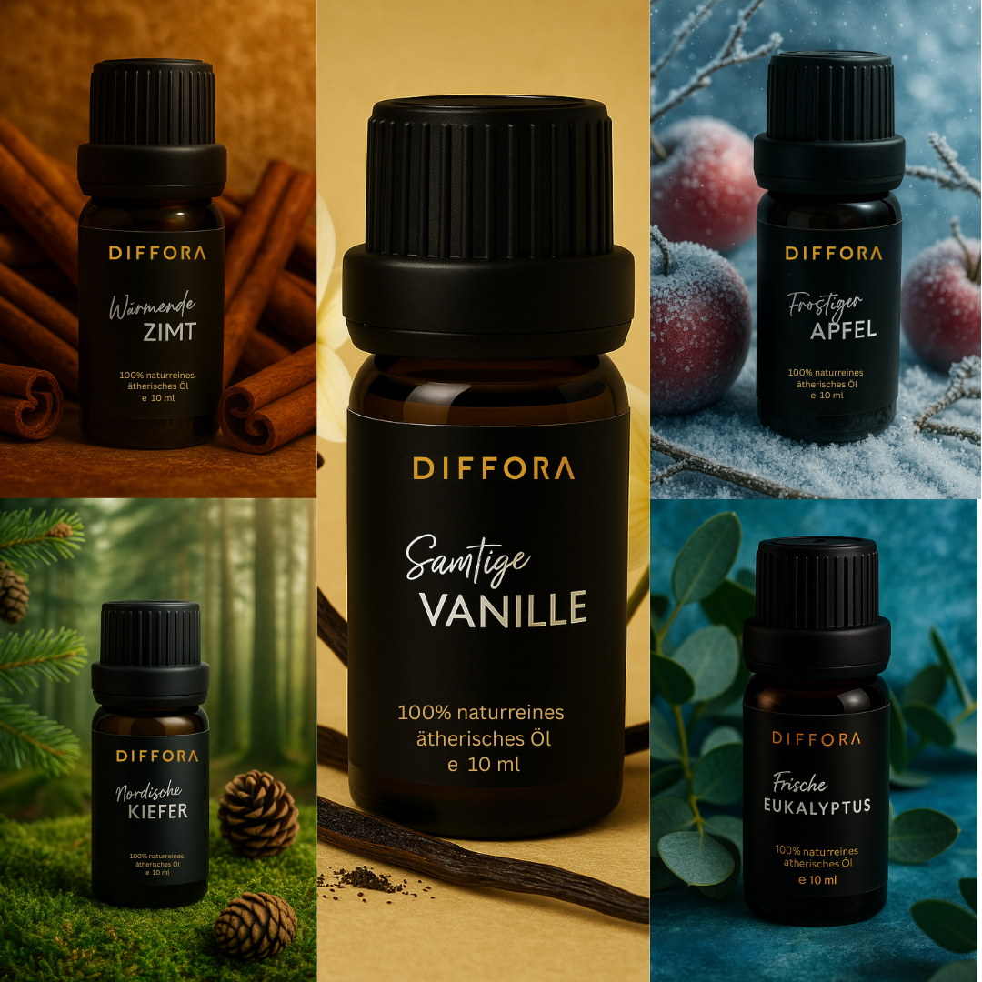 Tauche ein in die Welt hochwertiger, naturreiner ätherischer Öle. Jedes Öl entfaltet seinen eigenen Charakter, von wärmend und beruhigend bis erfrischend und belebend. Perfekt für dein Zuhause, deine Wellnessroutine oder als Geschenk für besondere Menschen.